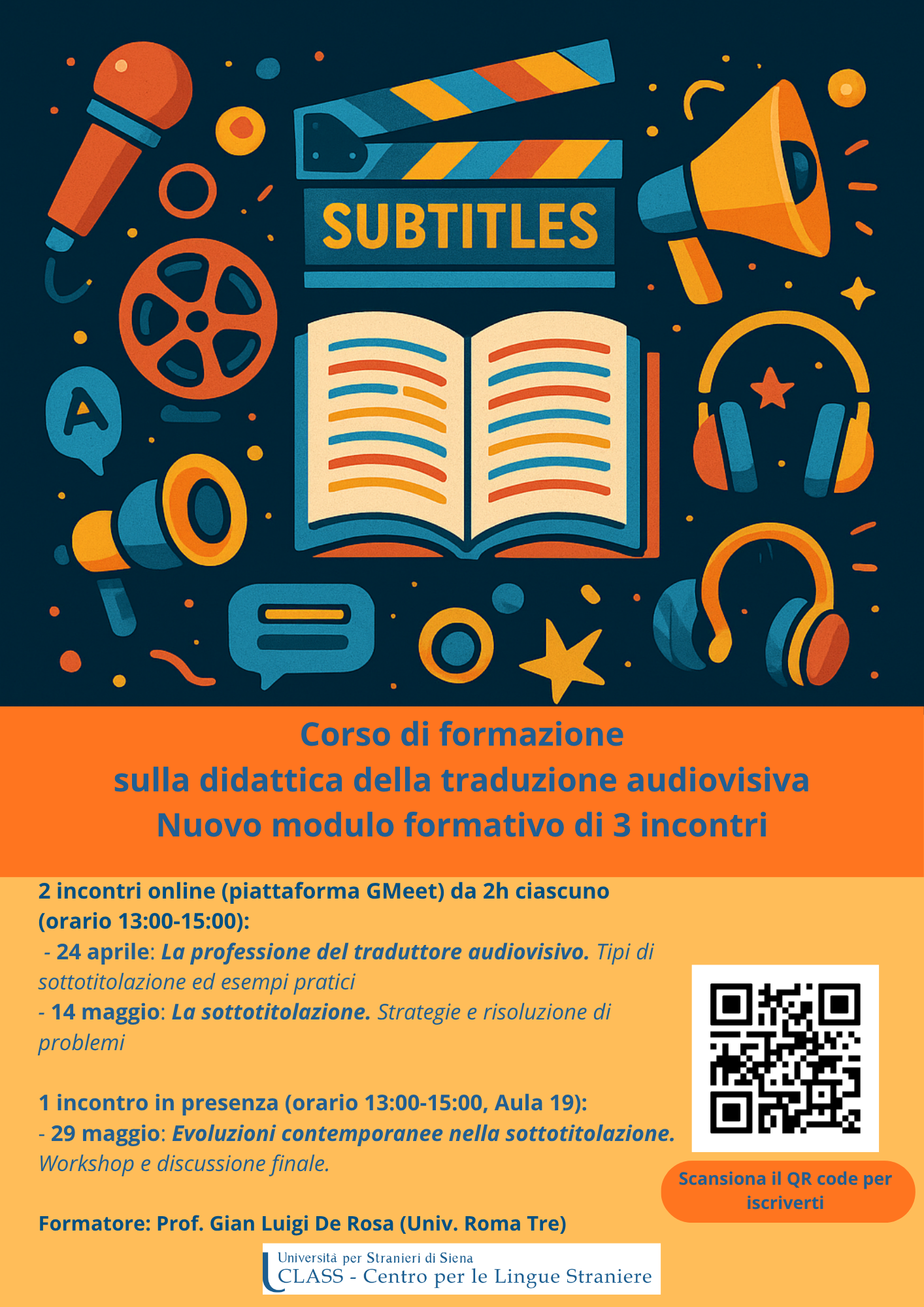 La formazione si articola in tre incontri, 2 online e uno in presenza condotti dall'esperto dal prof. Gian Luigi De Rosa, che accompagnerà le/i partecipanti in un percorso pratico e interattivo. Oltre a presentazioni e dimostrazioni tecniche, è previsto ampio spazio per domande, esercitazioni guidate e confronto sulle possibili applicazioni didattiche.